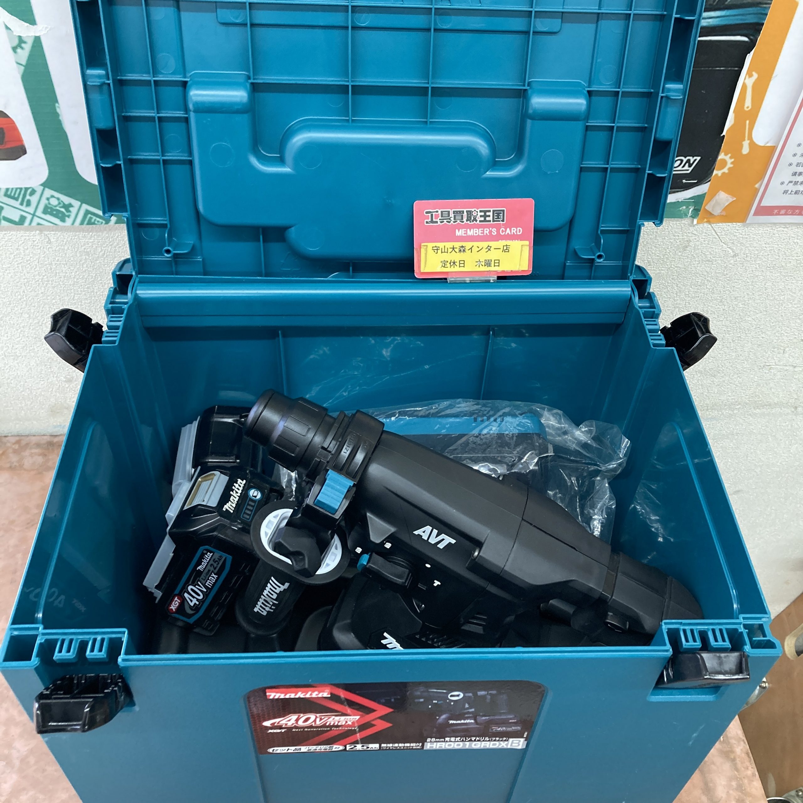 【工具買取王国守山大森インター店】愛知県名古屋市のお客様より★ makita(マキタ) 28㎜40v充電式ハンマドリル 黒(フルセット2.5Ahバッテリx2/充電器/ケース) HR001GRDXB 34,000円で買取させて頂きました!!